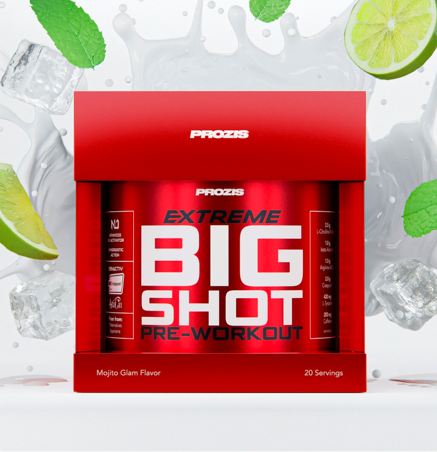 Extreme Big Shot est un pré-workout conçu pour soutenir l’énergie, la concentration et les performances lors des entraînements intensifs. Sa formule associe caféine, bêta-alanine, créatine Creapure®, L-tyrosine, électrolytes et vitamines afin d’aider à maintenir une intensité élevée tout au long de la séance. Idéal avant les entraînements de musculation, de cross-training ou de cardio intense, il favorise la force, l’endurance et la concentration pour optimiser chaque session d’entraînement.